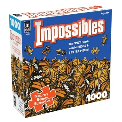 NO EDGES: A borderless puzzle means no straight edges to start from! EXTRA PIECES: 5 Extra pieces that do not fit anywhere in the puzzle to further the challenge. PATTERNS: Repeating pattern lines and colors add another layer of complexity. ADDED CHALLENGE: The next evolution of puzzles plus for puzzlers ready for a challenge. 1000 PIECES: The Impossibles Puzzles are 1000 piece jigsaws with added twists. COLLECT THEM ALL: Try all of our Impossibles puzzles - can you solve them all? PERFECT GIFT: Give your puzzle-loving friend or relative the perfect birthday, holiday or anytime gift of an Impossible Puzzle QUALITY ART: Finished solving the puzzle? Impossible Puzzles make great wall art and home décor once finished. PUZZLE SIZE: Impossibles Puzzles measure 24" x 24" and are a perfect size to complete on a countertop, kitchen or dining table. AGES 12+: Impossible Puzzles are the best answer to a day inside with the whole family., Manufacturer: University Games
