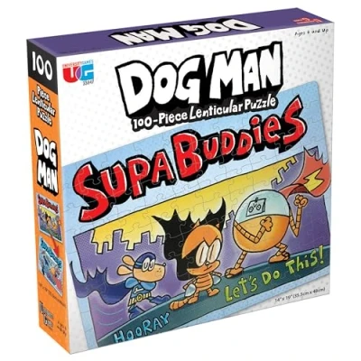 University Games 33846 Dog Man Supa Buddies 100 Piece Lenticular Jigsaw Puzzle, Multi Colored, One Size