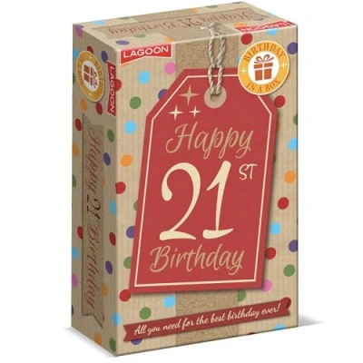 COMPLETE BIRTHDAY KIT: All-in-one 21st birthday celebration package featuring a collection of festive items including games, decorations, and party accessories PARTY FUN: Features engaging Birthday Trivia Card Game and Birthday Bingo Card for entertaining party activities DECORATIVE ELEMENTS: Contains essential party decorations including 21st bunting, paper confetti, a 21st cake topper, and 21st balloons to help create a party atmosphere CELEBRATORY ACCESSORIES: Includes fun party wear items such as Happy 21st Birthday badge, special birthday glasses, and a commemorative 21st keyring PERFECT GIFT SOLUTION: Convenient gift box with everything needed for a complete 21st birthday celebration, suitable for direct delivery or surprise presentation. For age 13+