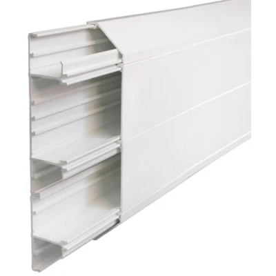 Chamfered dado trunking 50x250mm. 1250N. SLC 50/250. UV resistant. -25°C/+60°C. white (3m) Technical Specification: Colour: Clear White Halogen Free: False Length: 3000 mm Material: Plastic Material Quality: Polyvinyl Chloride (PVC) Mounting Method Covers: Spanned RAL Number: 9010 Construction Rear Wall (Inner Side): Continuous C-profile Construction Type Rectangular: False Cover Width 1: 80 mm Covers Supplied with the Product: True Depth: 50 mm Mounting Perforation in Base: False Number of Covers: 1 Number of Partitions: 4 Protection Film: False Surface Protection: Untreated Symmetric: True Width: 250 mm With Cable Fixing Clip: False With Duct Connector: False
