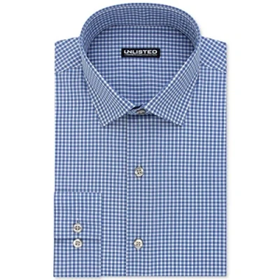 UNLISTED Men's Dress Shirt Slim Fit Checks and Stripes (Patterned), Medium Blue, 17" 17.5" Neck 32" 33" Sleeve