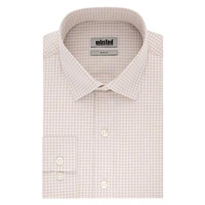 UNLISTED Men's Slim Fit Check Spread Collar Dress Shirt, Almond, 14" 14.5" Neck 32" 33" Sleeve