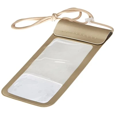 Waterproof mobile phone pocket. Perfect for a day at the beach or travelling. Easy safety closure of the bag. Adjustable cord for carrying. The phone is fully functional in the case and you can even operate the camera.