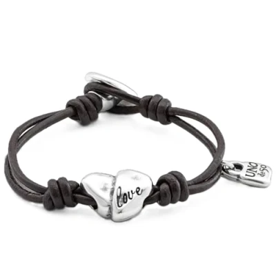 Adjustable brown leather bracelet with an irregular silver-plated heart-shaped central piece. A jewel that can be worn on a daily basis and has a unique design. It also includes the classic UNOde50 padlock. Piece made in Spain under a 100% handcrafted process.