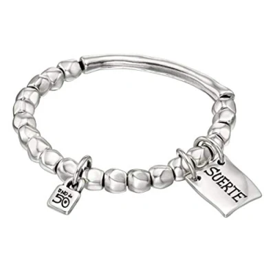 Uno de 50Bead bracelet with tubular piece and silver-plated plate with message“luck”. Iconic of UNOde50, 100% handmade in Spain.