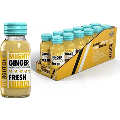 UNROOTED Mighty Ginger Shots Multipack Immune System and Natural Energy Booster 12 x 60ml Bottles Ginger, Turmeric, Chilli & Baobab