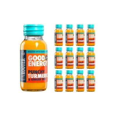 UNROOTED Punchy Turmeric Shots Multipack Immune System and Natural Energy Booster 12 x 60ml Bottles Turmeric, Ginger, Orange, Carrot & Baobab
