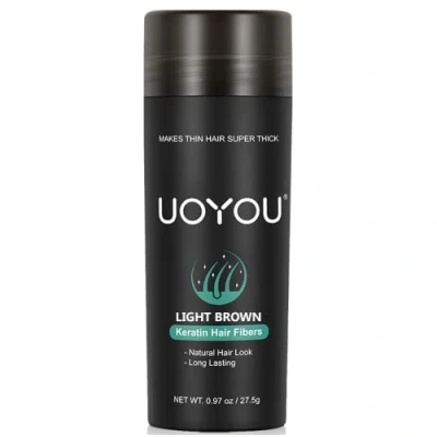 UOYOU LIGHT BROWN Hair Fibres for Thinning 27.5g Bottle Undetectable & Natural Keratin Fibers Concealer Loss Men and Women Building Powder [LIGHT BROWN]