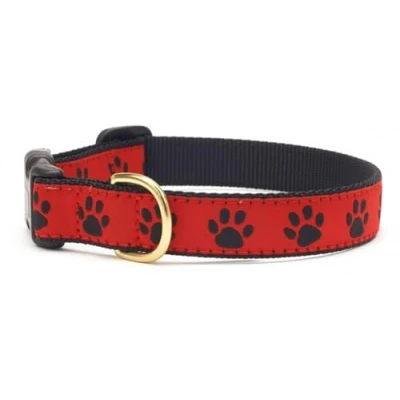 Up Country Reb C M Red Black Paw Dog Collar Wide (1 Inch)