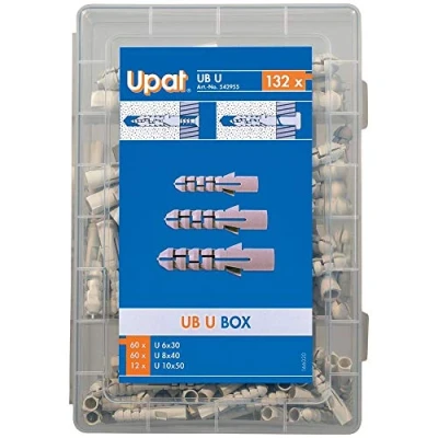 Always have the right dowel at hand - the most common diameters are pre-sorted and ready to hand, eliminating searching times. Practical storage system - The box is compact, easy to transport and can be refilled. Box contents: 1 x assortment box with expansion plugs: 60 x ultra-dowels U 6 x 30, 60 x ultra-dowels U 8 x 40 and 12 x ultra-dowels U 10 x 50., Manufacturer: Upat Vertriebs GmbH