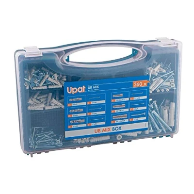 Practical storage system - the box is compact, easy to carry and can be refilled Everything from one box - in addition to the dowels, the matching screws are also available immediately. Always have the right expansion dowel system at hand – thanks to the various types and dimensions of the dowel, the attachment can be optimally adapted to the application and building material. No more search times - thanks to the system there are dowels and screws pre-sorted to hand. Box contents: 1 x assortment box with expansion dowels, universal dowels and screws: 40 x ultra dowels U 5x25, 40 x ultra dowels U 6x30, 30 x ultra dowels U 8x40, 40 x S 4x30, 40 x S 4x40, 30 x S 4x40, 30 x S 5x70, 30 x universal dowels UVD II 6x30 R, 30 x universal dowels UVD II 8x40 R, 10 x universal screw 4 screw 50 x 30 x S 10 x 50, Manufacturer: Upat Vertriebs GmbH