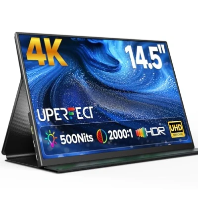 UPERFECT 14.5" 4K Portable Monitor, UHD 3840x2400 Matte 500 Nits Brightness 16:10 Travel Screen w/Smart Cover, 1.06B Colours, USB C Mini HDMI Metal Frame External Display for Laptop/PC/Phone/Game