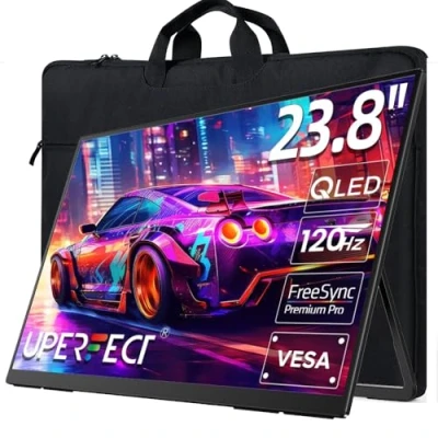 Perfect Viewing Experience: QLED technology enhances the monitor's backlight to generate purer, more vibrant, and remarkably bright colours. The spacious 23.8-inch display offers an extensive viewing area, whilst 125% sRGB coverage and 500 nits support combine to produce vivid, true-to-life colours and exceptionally sharp detail Ultra Smooth Performance: With a 120Hz refresh rate and FreeSync technology, this UPERFECT gaming monitor ensures smooth, tear-free gameplay; Fast frame rendering and low input lag provide an immersive experience for gamers Widely Compatible: With two full-function USB-C 3.1 ports and a standard HDMI interface, the USB-C monitor offers broad compatibility across devices. Built-in dual speakers and an audio jack provide flexible audio options for an enhanced entertainment experience Adaptable Setup: The 180° adjustable stand ensures comfortable viewing, while 100×100mm VESA compatibility allows for wall-mounting or arm attachment; This versatile design of the portable monitor enhances productivity and optimises workspace efficiency Sturdy and Bezels Design: The monitor's robust aluminium alloy casing offers reliable protection, while ultra-slim bezels create a near edge-to-edge view; This sleek, minimalist design reduces distractions, perfect for professionals and creatives alike