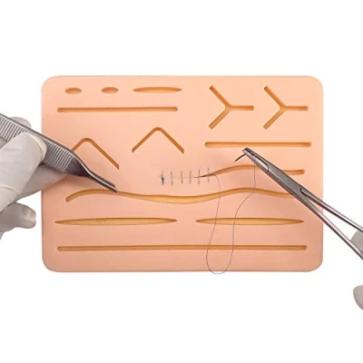 TEXTURE - The suture pad made by best silicone composite material, and pass through hundreds of lab test, make sure its texture is close to real skin, not just a hard rubber. PROTECT MESH - Aiming to increase user experience, and strengthen suture pad durability, we place one protective mesh in the first skin-like layers as close as possible to the surface. It prevent suture pad from ripping, especially for beginner who will do elementary suture training. PRE-CUT WOUNDS DESIGN - The suture pad provide with various wounds to match different training task. 6inches straight pre-cut wound, can apply to suture speed training for straight laceration wound. 6inches curved pre-cut wound, can apply to suture speed training for curved laceration wound. 3inches wide pre-cut wound, can apply to suture skill training for avulsion wound. Triangle pre-cut wound, can apply to suture skill training for Triangle shape puncture wound. MATERIAL - Say good bye to the smelly banana & poke skin. The new suture is made by food grade silicone, non-smell, non-toxic, environmentally friendly, able to cycle use & portable. Make suture training more easy & happy. 100% QUALITY GUARANTEE - If you don’t satisfy the product, we can do replace or refund.