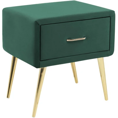 Upholstered Bedside Table Nightstand Velvet 1 Drawer Emerald Green Flayat
