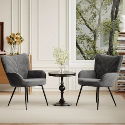 Premium Velvet Upholstery Upholstered in soft, breathable velvet fabric, this dining chair offers a smooth, skin-friendly touch with a subtle sheen. The plush surface adds warmth and elegance to any dining room while remaining comfortable for everyday meals. Ergonomic Curved Back & Armrests Designed with a gently curved ergonomic backrest and integrated armrests, this dining room chair provides excellent support for your back and arms, helping you sit comfortably during long dinners and family gatherings. Comfortable Wide Padded Seat Featuring a generously wide, thickly padded seat, this upholstered dining chair ensures lasting comfort. Ideal as a kitchen chair or dining table chair for extended seating without discomfort. Sturdy Metal Legs with Anti-Slip Feet Supported by sleek black metal legs, this dining chair offers strong stability and durability. Anti-slip foot protectors help prevent floor scratches while keeping the chair steady on different surfaces. Modern Nordic Dining Room Style With its modern Nordic-inspired design and elegant leaf-pattern stitching, this dining chair blends effortlessly with contemporary dining rooms, kitchens, or open-plan spaces, making it a stylish and practical dining room chair choice.