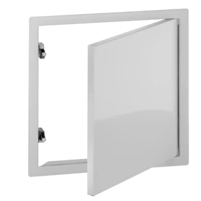 Finishes: galvanised sheet steel, powder-coated, white, RAL 9016 Mounting in wall or ceiling frame with soft profile for clean finish on plaster or plasterboard surfaces Hanging door leaf for right and left hinge The nominal dimensions for this door are 250/250 mm, Manufacturer: Upmann GmbH & Co. KG