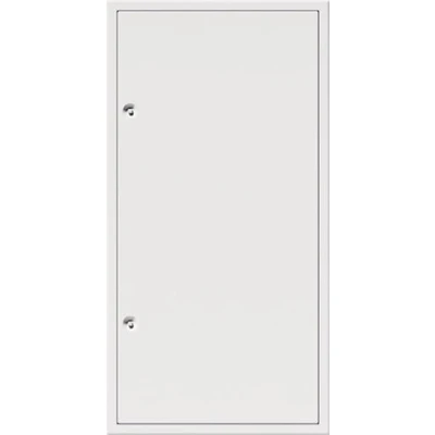 Hinged door, frame made of white powder-coated, galvanised sheet steel, door leaf made of white powder-coated, galvanised sheet steel, closure always on the height side, removable door leaf, stop possible DIN right or DIN left, four-part mounting frame, welded corners, for a clean finish on plaster or plasterboard surfaces, fixed rotating wall anchors, standard colour white, RAL 9016, Manufacturer: Upmann