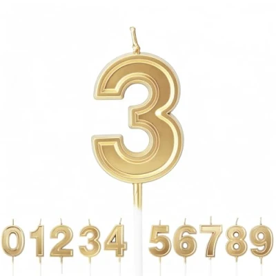 High Quality Raw Materials:Birthday candles are made of quality smokeless wax.Eco-friendly and non-toxic.Easy to insert and light.Burning evenly and consistently. Delicate Look:Happy birthday candles come in gold vivid color and glow bright in dark light.Make your birthday cake special and stand out. Wide Usage:Suitable for many occasions, such as birthday, baby showers, anniversaries, retirement parties and so on, the candle holder would not break your cake and convenient to use. Perfect Size:12.5 x 3.5x1cm.Gold number candles hold up well on the cake in right weight and length. Warm Note:Keep the candle away from fire when using it, keep away from children when burning.