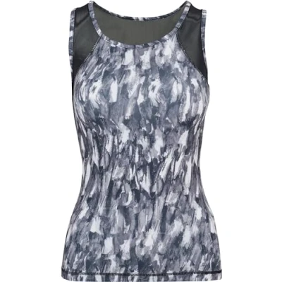 Eye-catching sports top for women with white/grey graphic print Back: sporty racer back Airy mesh inserts on the straps Available in sizes XS to XL
