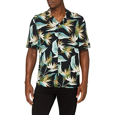 Cut: No cut Fit: regular The exotic floral pattern consists of bird of paradise flowers
