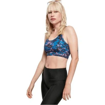Sports bra with camo pattern and mesh insert Made from stretch jersey (polyester and elastane) Racer back with mesh insert Sewn-in cups and elastic band in the hem Visit the Urban Classics Store: a click on the link leads to the Urban Classics Brand Store and even more stylish streetwear for men and women