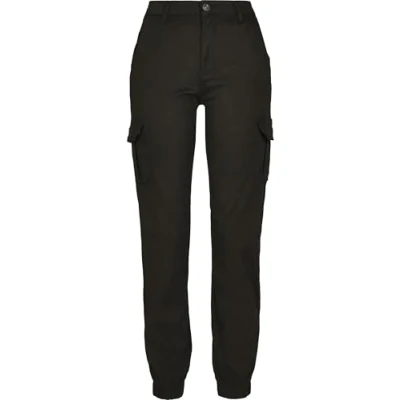 URBAN CLASSICS Combat Cargo Trousers for Women, Joggers Stretch Casual High Waist Trousers, Colour: Black, Size: 33