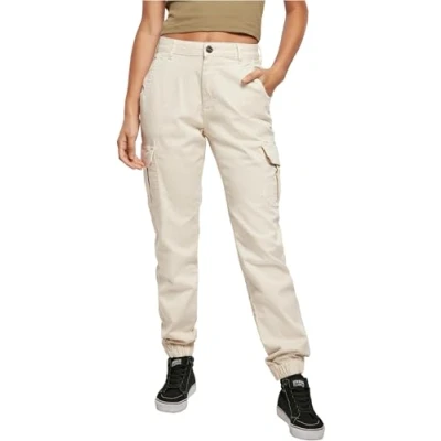 URBAN CLASSICS Combat Cargo Trousers for Women, Joggers Stretch Casual High Waist Trousers, Colour: Whitesand, Size: 33
