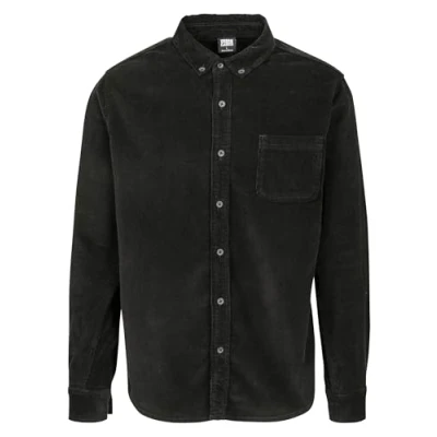 Simple corduroy shirt for men, one chest pocket, button-down collar Button placket, buttons on the collar, chest pocket and cuffs Chest pocket on the left chest The shirt has a rounded hem Available in black, olive and sand in sizes S to 5XL