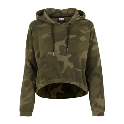 Urban Classics Cropped Hoodie, Women's, Size: Medium, Olive