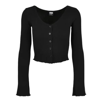 AmazonWomen's Ribbed Cropped Cardigan with Fine Button Placket Made from stretch rib (cotton with elastane), slim fit Flared bell sleeves Rolled seam A click on the brand name leads to the Urban Classics Brand Store and even more trendy streetwear