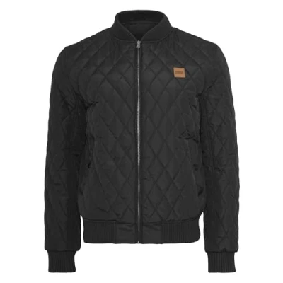 Fashionable quilted jacket from Urban Classics in bomber jacket style Lightweight nylon jacket with diamond quilt look 8 side pockets with press studs and an inner pocket Transitional quilted jacket in black, blue, olive green and red - perfect for spring, summer, autumn Men's bomber jacket with ribbed knit cuffs on sleeves, hem and collar