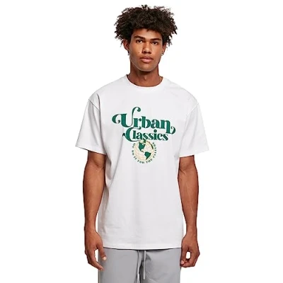 Urban Classics Globe LOGO TEE Print Tshirt, Men's, Size: Large, White
