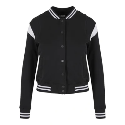 Stylish college jacket for women made from comfortable sweat material Inserts in contrasting colours in the shoulder area spice up the classic college jacket visually Visit the Urban Classics store: a click on the link leads to the Urban Classics Brand Store and even more stylish streetwear for men and women