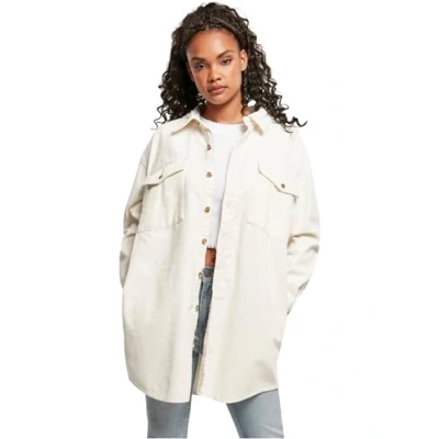 Urban Classics Ladies LONG Corduroy Overshirt Buttondown blouse, Women's, Size: XS, Whitesand