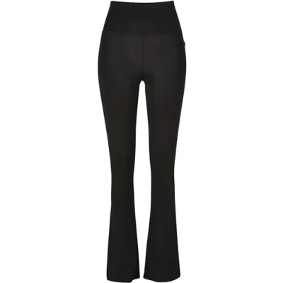 Urban Classics Ladies Organic Cotton High Waist Wide Leg Leggings Stretch Jersey Bootcut in 3 Colours Sizes XS 5XL, Black, XL