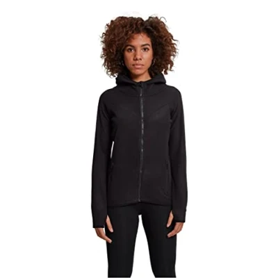Long sleeve fleece hooded jacket for women with side pockets and so-called "thumbholes": thumb holes on both sleeves, for inserting the thumbs, so that the rest of the hand stays nice and warm The zip hoodie made of fleece with a light stretch content is the perfect companion on cold days, which ensures that you are kept nice and warm thanks to the extended back part The zip is high-closing and goes directly into the hood so that you do not freeze on the neck and head even in cool winds Whether at school, hiking or simply for leisure, this jacket always fits and becomes a faithful companion especially in the cool seasons The fleece jacket is available in green and black in sizes XS, S, M, L and XL