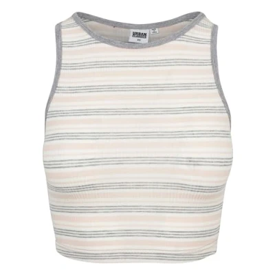 Urban Classics Ladies RIB Stripe Cropped TOP Top, Women's, Size: Medium, Pink/white/grey