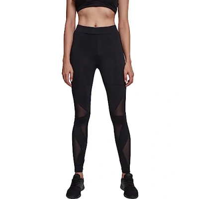 Sporty women's leggings with trendy, semi-transparent tech mesh inserts for optimal air circulation, perfect as yoga leggings and for other sports activities The elastic waistband paired with the skin-tight fit of the yoga trousers ensures a perfect fit and comfortable wearing comfort and ensures that the trousers do not slip during sports and everything stays where it belongs The trousers are not only perfect as sports leggings - they also look good at home on the couch The sports trousers are available in sizes XS - 5XL A click on the brand logo leads to the Urban Classics Brand Store and even more trendy streetwear