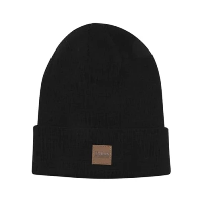 Urban Classics Leatherpatch LONG Beanie, Men's, Size: One Size, Black