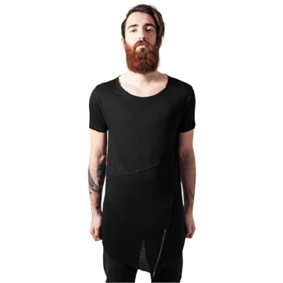 Asymmetrical hem with integrated zip With many details Made of cotton Expressive open-edged decorative seams A real eye-catcher for any occasion