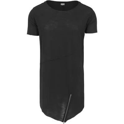 Urban Classics LONG OPEN EDGE Front ZIP TEE Print Tshirt, Men's, Size: Medium, Black