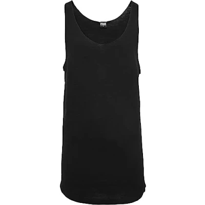Urban Classics Men Long Shaped Open Edge Loose Tank Top Mens Available in Many Sizes S XXL, Black (Black 7), XL