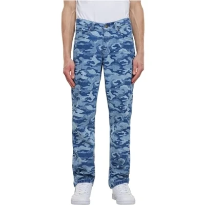 Urban Classics Men's Laser Camo Printed Jeans Pants, Bluelasercamo,