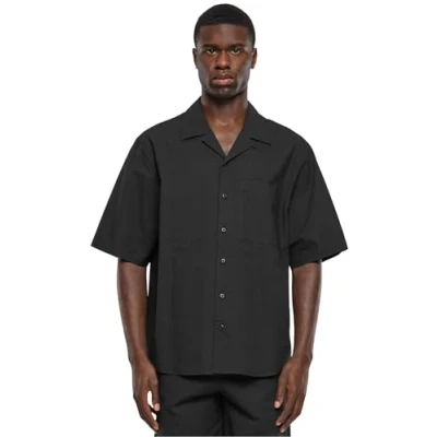 Urban Classics Men's Relaxed Seersucker Short Sleeve Shirt, Black, XL