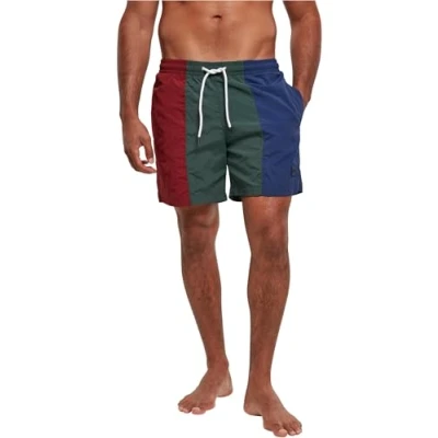 Urban Classics Men's Swimming Trunks, Burgundy/Bottle Green, M