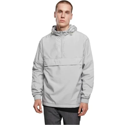 URBAN CLASSICS Men's Windbreaker Jacket, Pullover Rain Jacket with Hoodie, Longsleeve Hooded Raincoat, Lightweight & Water Repellent, Colour: Lightasphalt, Size: X Large