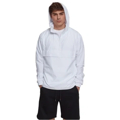 URBAN CLASSICS Men's Windbreaker Jacket, Pullover Rain Jacket with Hoodie, Longsleeve Hooded Raincoat, Lightweight & Water Repellent, Colour: White, Size: XX Large