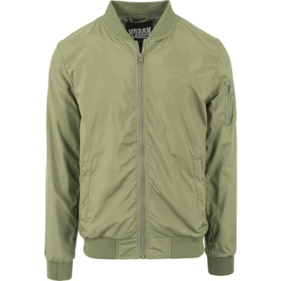 Urban Classics Men's Bomber Casual Flight Jacket with Fitted Waist and Cuffs Longsleeve Pockets Zipper, Green, L UK