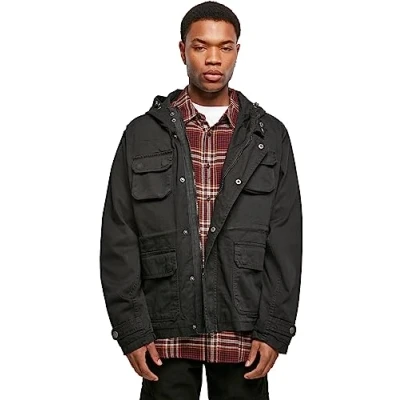 Authentic men's jacket with numerous small details Made from skin-friendly cotton Chest pockets with flap and two quilted pockets with flap and side access Hood with elastic drawstring and stopper, latch and D-rings A click on the brand name leads to the Urban Classics Brand Store and even more trendy streetwear